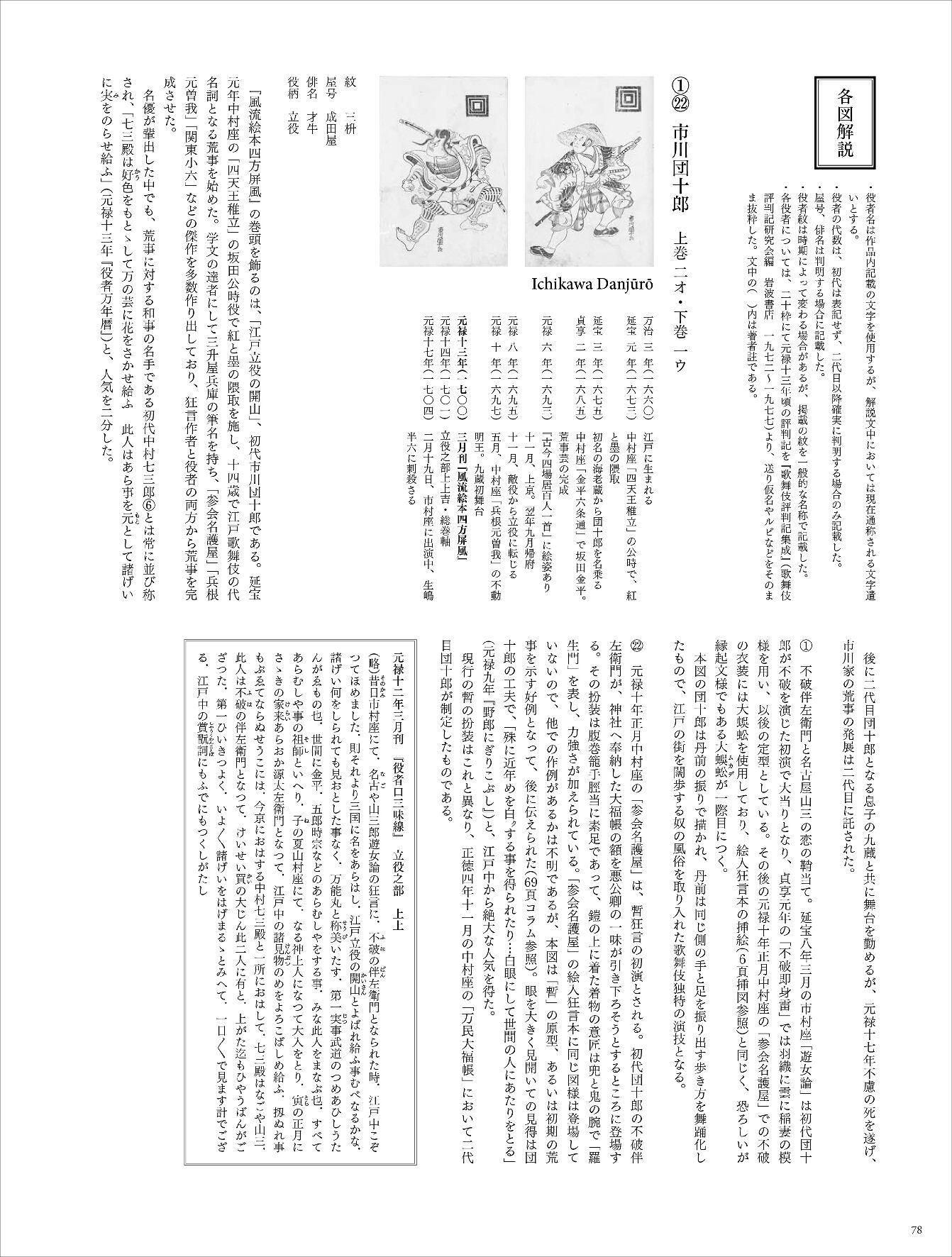 巻末の各図解説では、各役者の略年譜と役者評判記の一文も記し、役者の当時の評判を知ることができます。